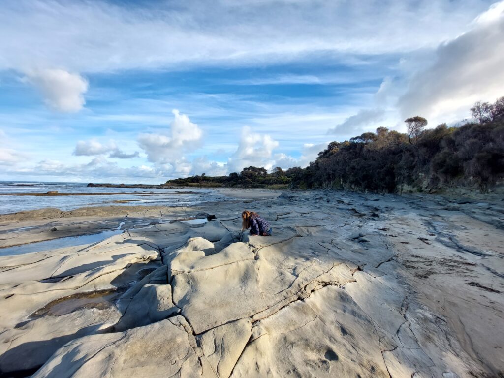 Der zweite Campingplatz war in der Blanket Bay und liegt direkt am Meer. Hier besteht der Wald, der bis zum Strand reicht, aus großen alten Eukalyptusbäumen mit lichtem Unterbewuchs. In diesem sind wir zu ‚Koalaspotting‘ gegangen und nachdem wir uns einmal eingeguckt hatten, haben wir ganz oben in den Wipfeln auch immer wieder welche entdeckt.