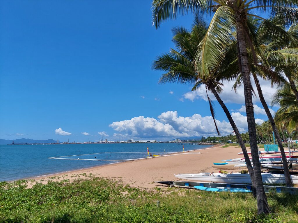 In Townsville sind wir wieder auf die Küste gestoßen. Zum Glück hat es nun auch an der Küste weniger geregnet, so dass wir tagsüber gut draußen und am Wasser sein konnten. INS Meer kann man in Queensland nur sehr eingeschränkt. Haie gibt es hier etwas mehr als im Süden, aber wohl nicht so viele, dass man prinzipiell Angst haben müsste. Zumal die Haie den Menschen zumeist auch lieber aus dem Weg gehen. Das ernstere Problem sind Würfelquallen. Deren meterlange durchsichtige Tentakeln sondern ein Nesselgift ab, das auch einen Erwachsenen binnen Minuten im kardiogenen Schock sterben lässt. In der Trockenzeit von Mai – Oktober sind sie selten an der Küste, dann ist das Schwimmen ungefährlich. In der Zwischenzeit bleibt die Möglichkeit innerhalb einem der aufgespannten Quallennetze zu schwimmen. Das haben wir genutzt. In einigen Städten, wie Townsville und auch Cairns hat die Gemeinde am Strand einen künstlichen Rockpool angelegt, der sicher und kostenlos von allen benutzt werden darf. Tolle Lösung!