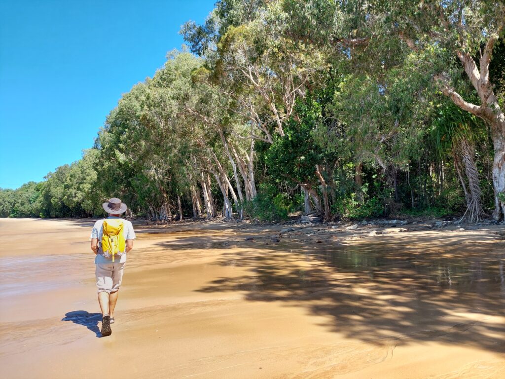 Das nördliche Queensland ist nicht nur Helmkasuar-, sondern auch Salzwasserkrokodilgebiet. Sie leben in den kleinen Zuflüssen des Meeres im Regenwald und schwimmen von dort ins Meer. Wir haben gelernt: Dort wo kein Creek mündet ist das Baden sicher. Gibt es hingegen viele Mündungen bleibt man dem Meer lieber fern. „Walking is safe, but NEVER walk in the creek!“ Und in der Dämmerungen sollte man einen guten Abstand zwischen sich und die Wasserkante bringen.