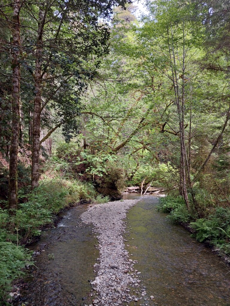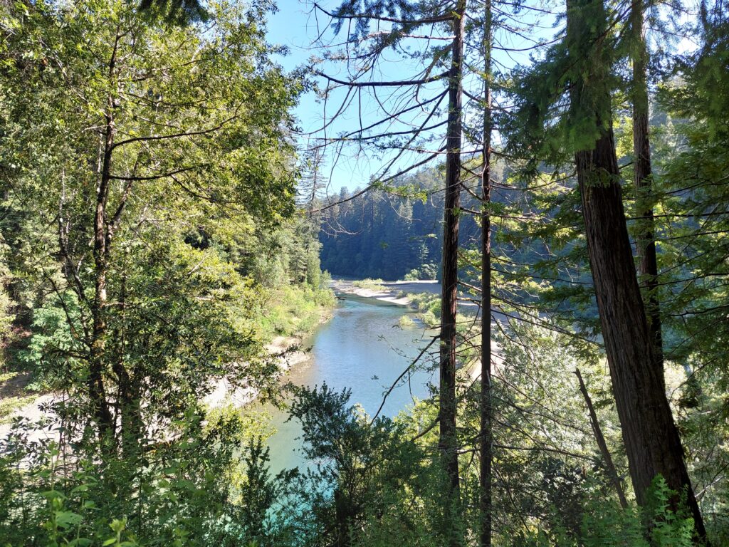 Ganz im Süden des Nationalparkverbandes liegt der Humboldt State Park. Dieser war vor 10 Jahren der nördlichste Punkt unserer Reise und wir hatten auf den unterschiedlichsten kurzen Trails Spaß daran, die besonderen Bäume von damals wiederzufinden. Was uns damals nicht auffallen konnte war, wie unterschiedlich der Bewuchs in den unterschiedlichen Regionen der jeweiligen Parks ausfällt. Im Norden ist der Unterbewuchs dichter und der Wald dunkler. Hier im Süden dominieren niedrige Farne den Unterbewuchs und lassen den Wald deutlich lichter erscheinen. Hier hat man zwischendurch immer mal wieder auch Ausblick auf den Fluss.