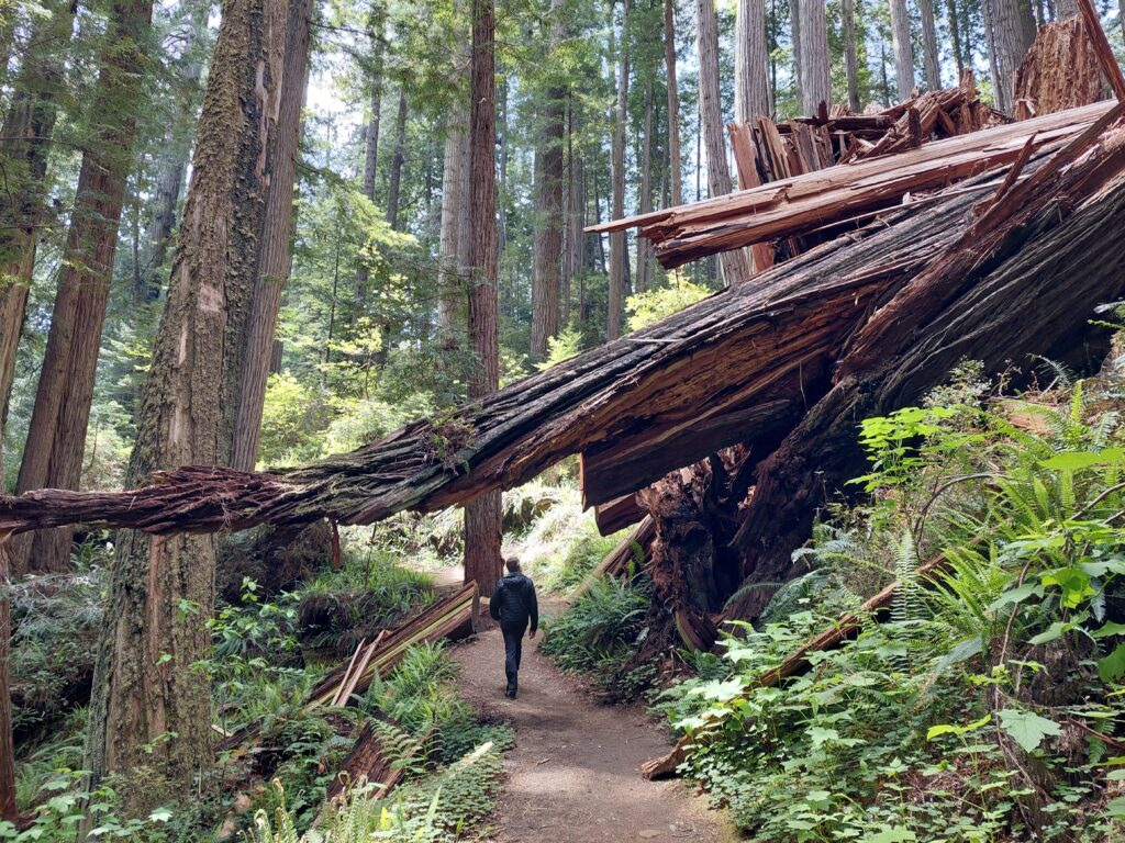 Zur Zeit der Ankunft der ersten europäischen Siedler, ‚European Americans‘ wie der politisch korrekte Terminus 2024 in den USA lautet, war noch die ganze Küste entlang der Coastal Range vom südlichen Oregon bis fast nach San Francisco von dichten Redwoodwäldern bewachsen. Viele der Siedler sind vielerorts im Rahmen des Goldrausches auf der Suche nach dem schnellen Gewinn gewesen. Da sich dieser nur bei den wenigsten einstellte, schwenkten viele auf’s Holzfällen um und sicherten sich ihren Lebensunterhalt durch das Einschlagen und Verkaufen von Redwoods. Heute sind mehr als 96% der ursprünglich vorhandenen Bestände verschwunden und die vorhandenen ‚Waldinseln‘ werden als unterschiedliche Schutzgebiete zu den Redwood National- und Stateparks zusammengefasst.