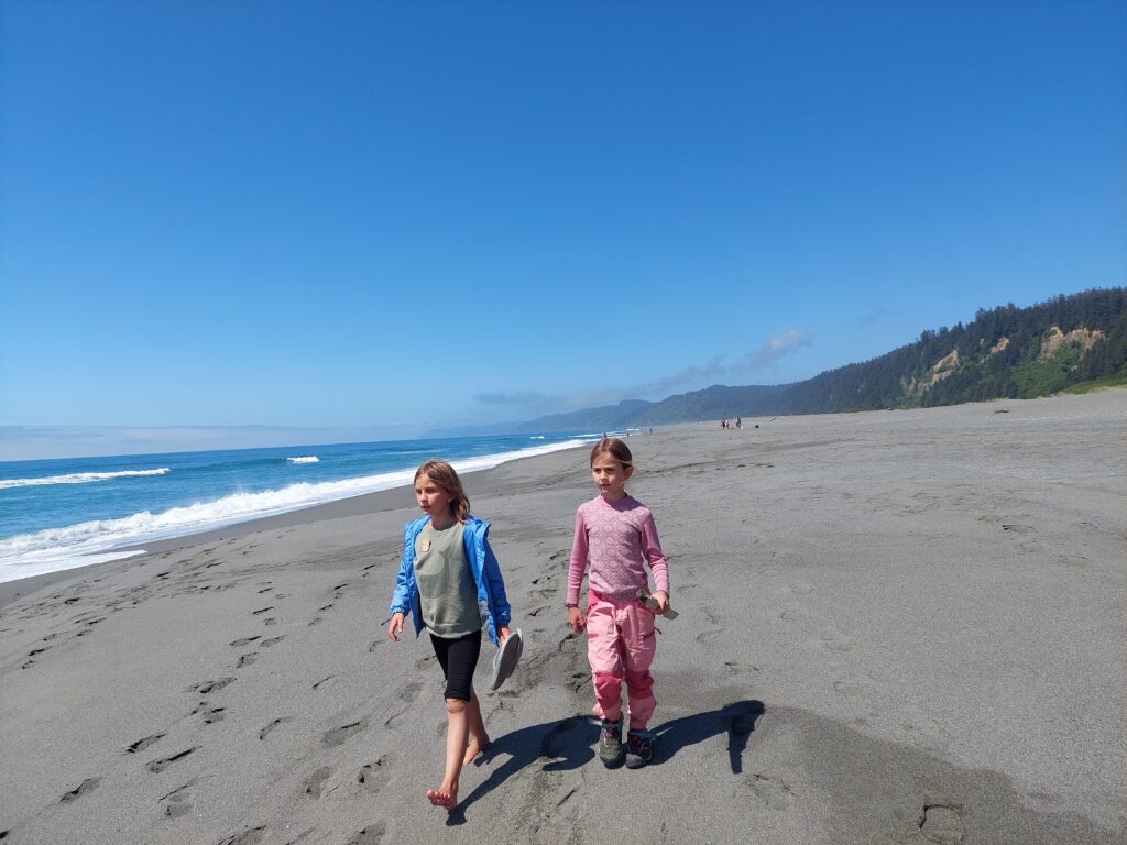 Einen Tag später haben wir uns weiter südlich auf eine 22km lange Wanderung durch den Redwoodwald, den Fern Canyon, entlang des Strandes bei Gold Bluff und schließlich zurück zum Besucherzentrum gemacht. Die Mädchen haben sich so tapfer geschlagen und wir alle sind am Strand mit der Sichtung zweier vorbeiziehender Buckelwale belohnt worden!