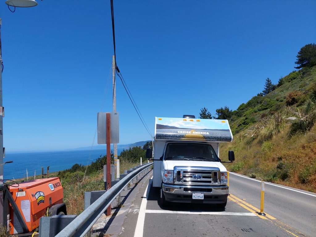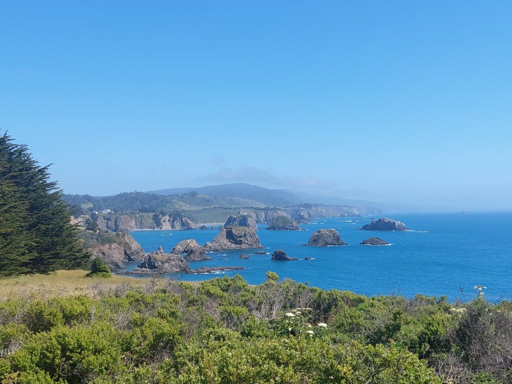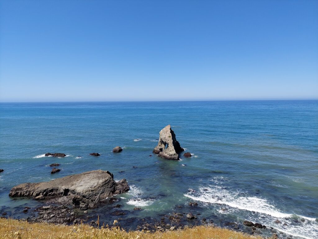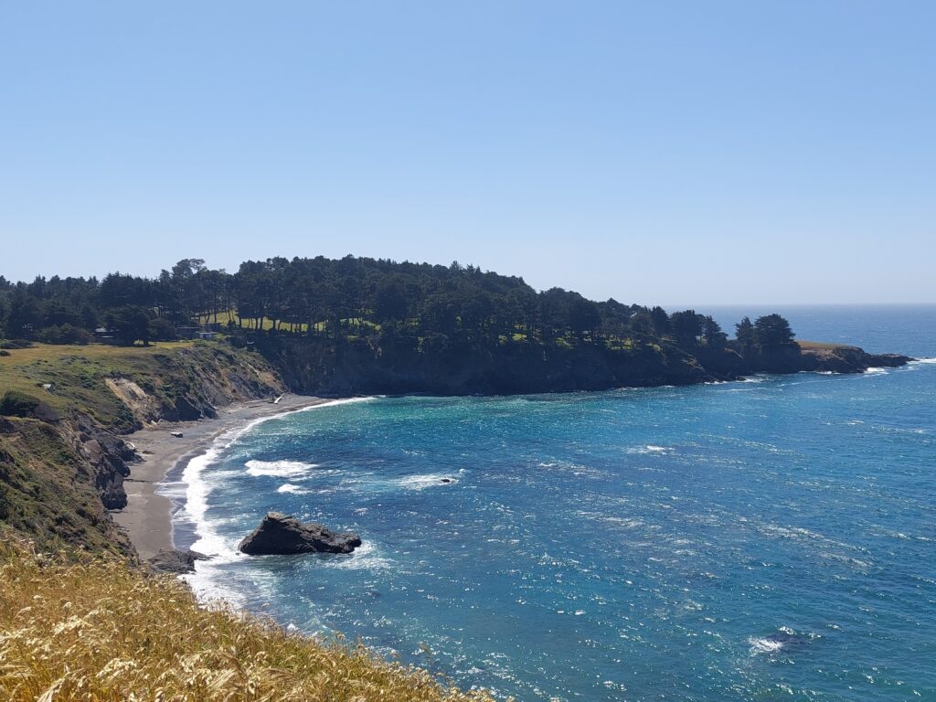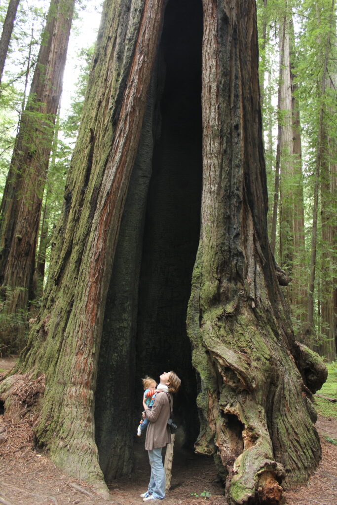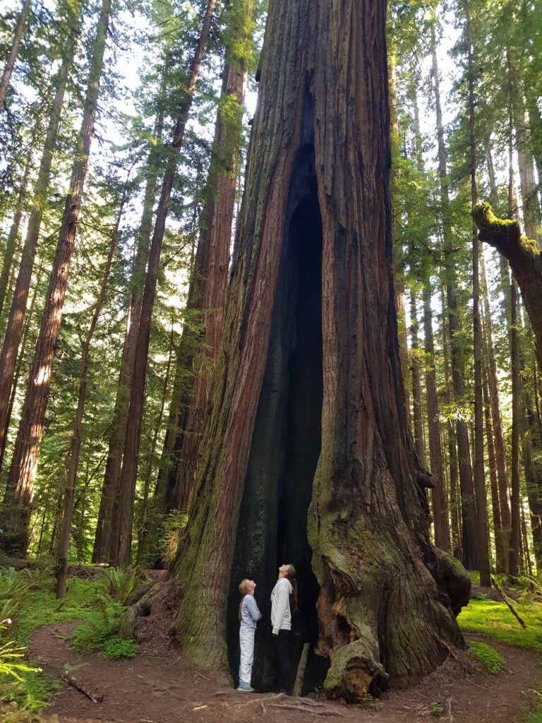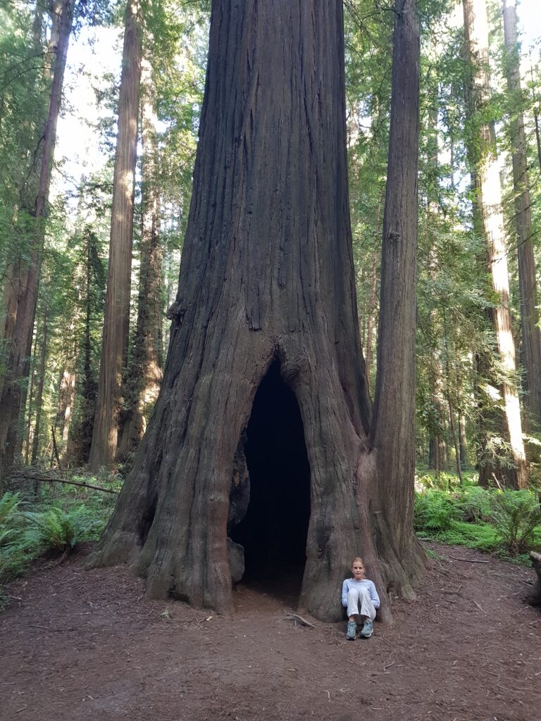Zunächst einmal sind wir aber weiter an der Küste entlang in Richtung Süden und der großen Redwoods gefahren. Hier im Norden ist die Straße abgesehen von uns Touristen einsam. In den Dörfern wohnen gerne zwischen 300 und 500 Menschen und irgendeine Form von Handyempfang, geschweige denn Internet, sucht man über weite Strecken vergeblich. Wir vor allem, die auf der Suche nach Campingplätzen waren.