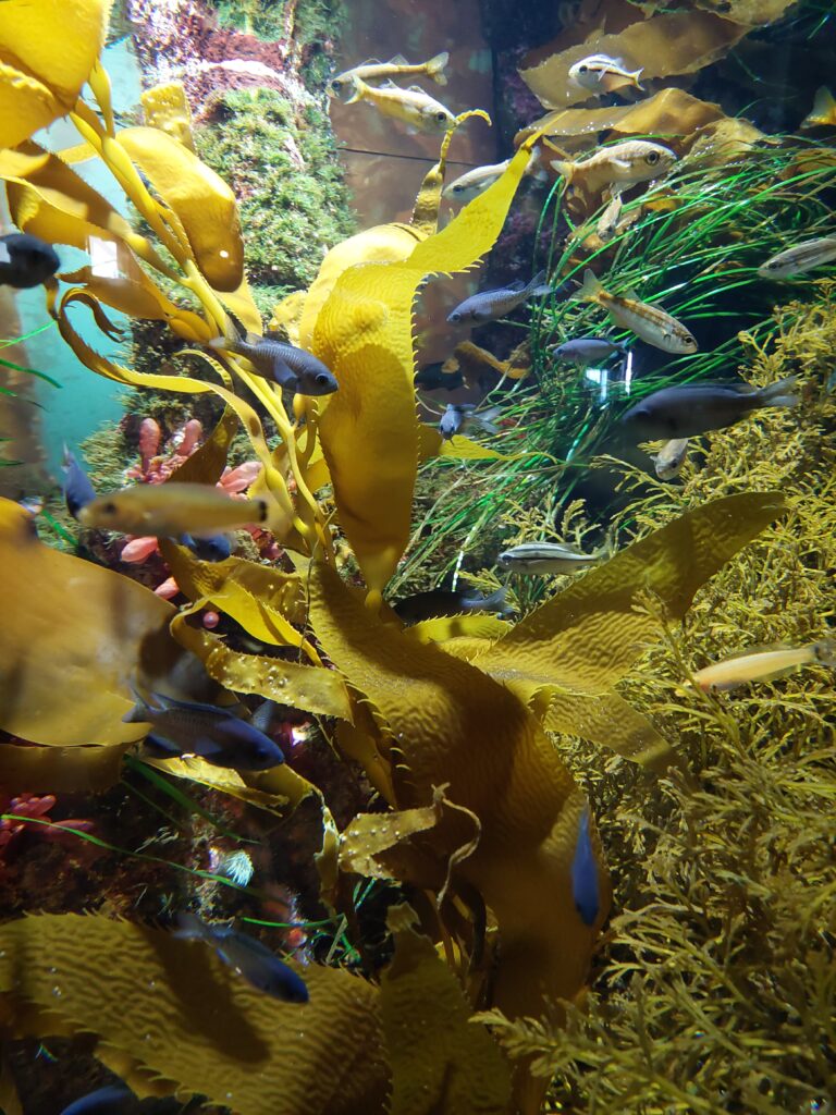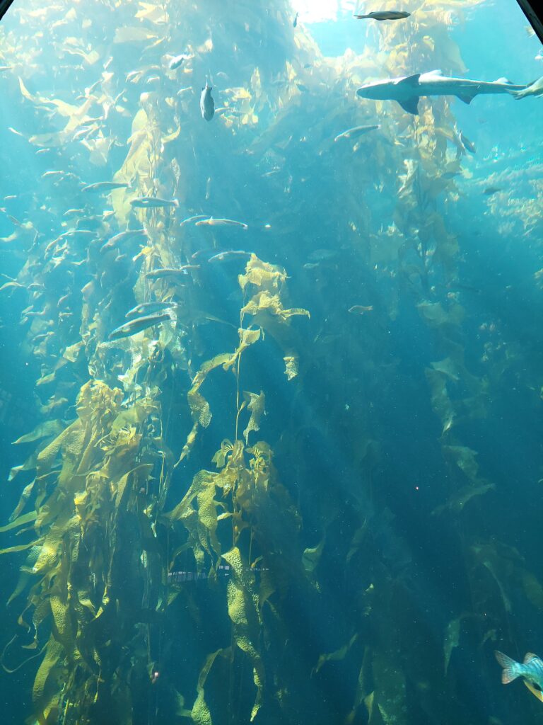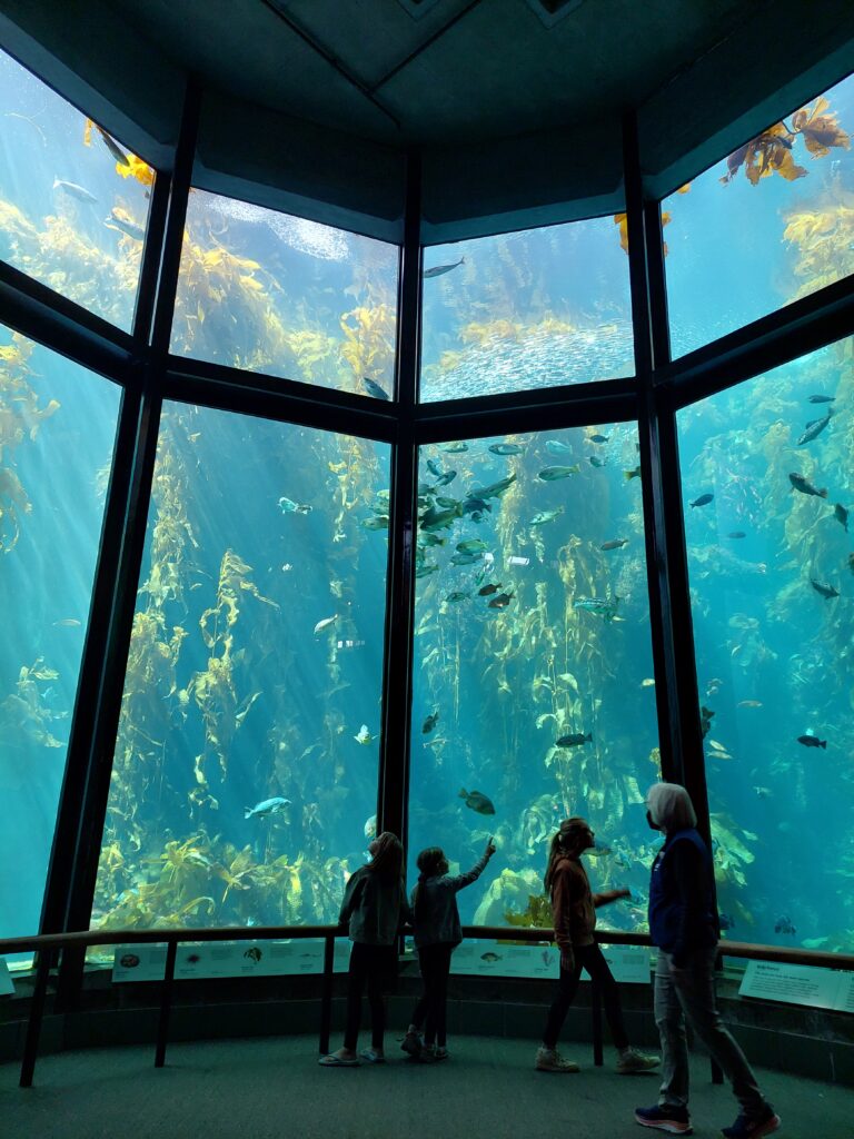 Das tolle an diesem Aquarium ist, dass das Draußen direkt mit einbezogen wird. Im großen Kelpwald-Becken schwimmen die Tiere die vor dem Fenster in der Bay schwimmen und von den Aussichtsplattformen des Museums kann man im Meer davor Otter und Seelöwen im Kelpwald beobachten.