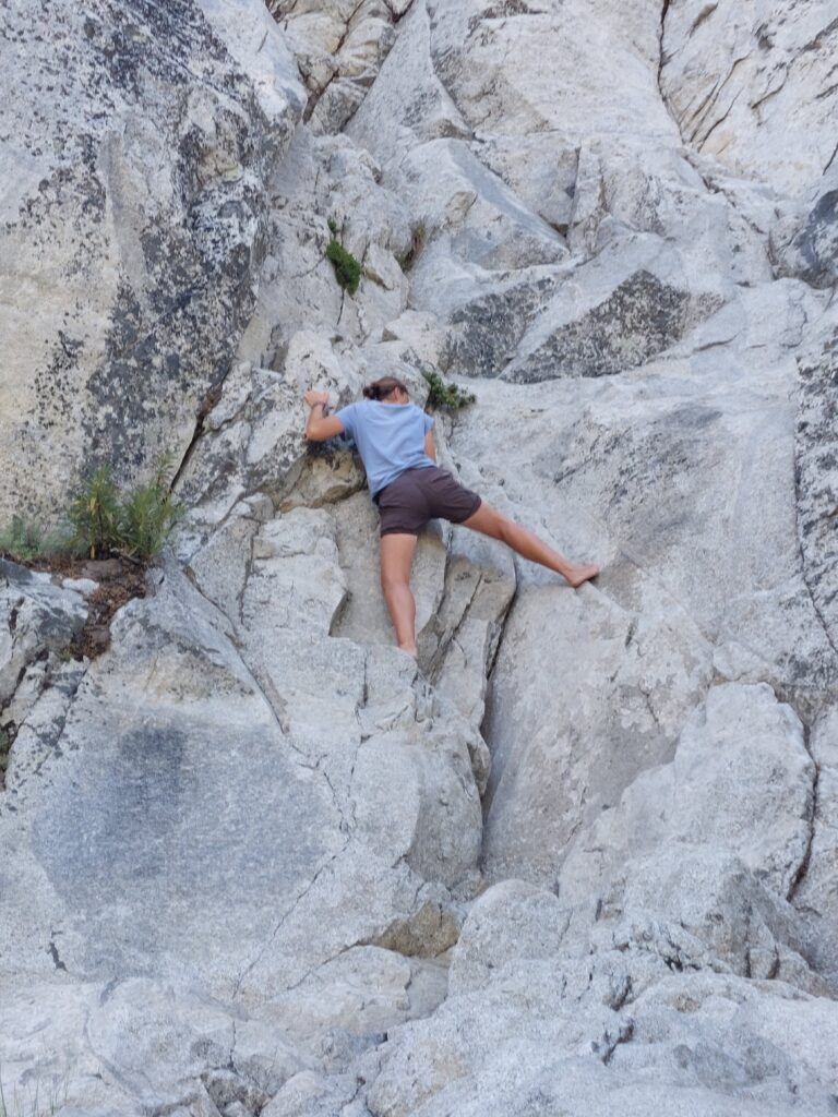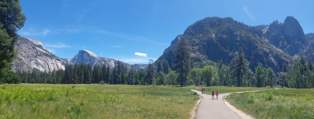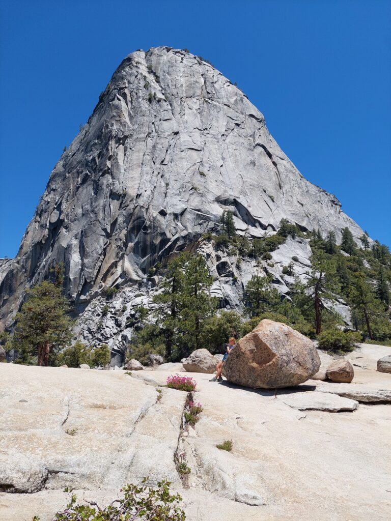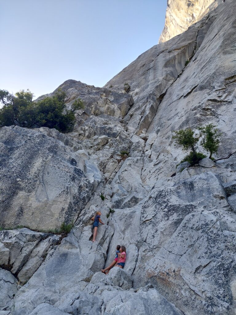 Nachdem wir unsere Nase im vorletzten Jahr ins Klettern am Fels gesteckt haben, sind die Mädchen immer vorne mit dabei wenn es eine Boulderwand gibt. Dementsprechend interessiert haben sie auch die Ausstellung über Klettern in den Granitwänden des Parks besucht. Danach wollten wir die berühmten Kletterstellen auch live erleben. Einmal die Hand an die senkrechte Wand von El Capitan legen…