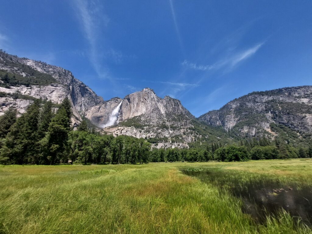 Aus einiger Entfernung konnten wir dann auch den oberhalb liegenden Upper Yosemite Fall bewundern.