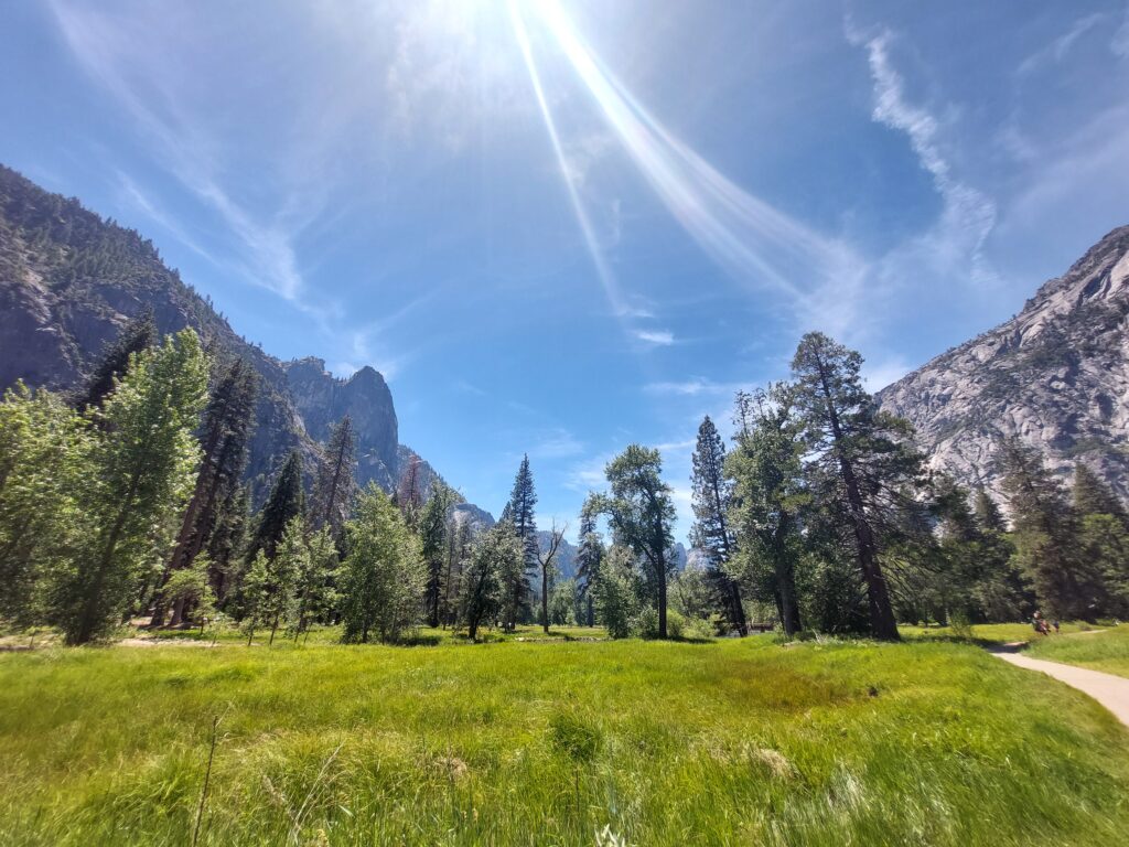 Wir hatten, wie gesagt Glück. Unser Campingplatz lag auch nicht im Valley, sondern ca. 1000m weiter ‚oben‘ am nordwestlichen Rand des Tals. Dadurch konnten wir leider nur eine kleine Wanderung direkt vom Campingplatz aus beginnen und mussten für den Rest erstmal fahren. Andererseits hatten wir es dadurch auf dem Campingplatz auch deutlich ruhiger.