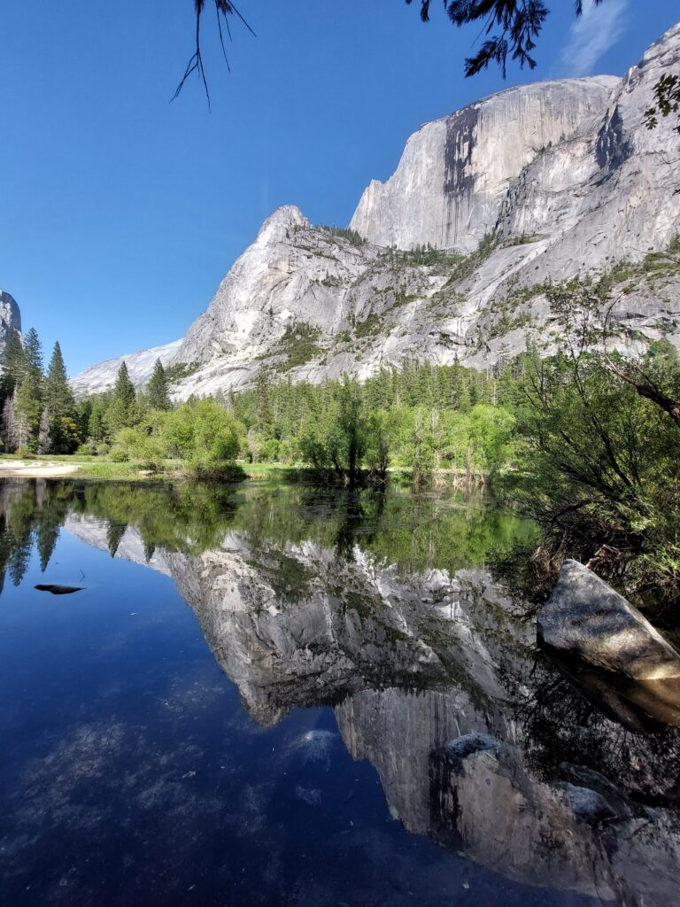 Nach den Heften sind wir noch bis zum Ende des Tals zum Mirror Lake gelaufen. Der Name war, einmal erreicht, ziemlich selbsterklärend.