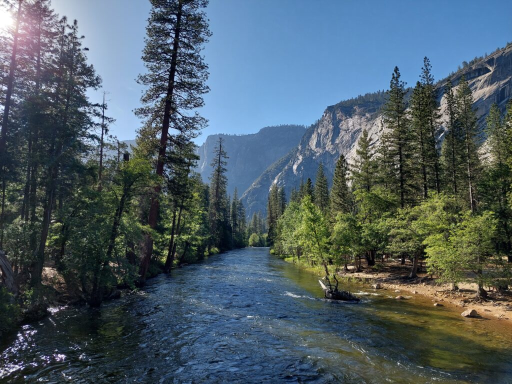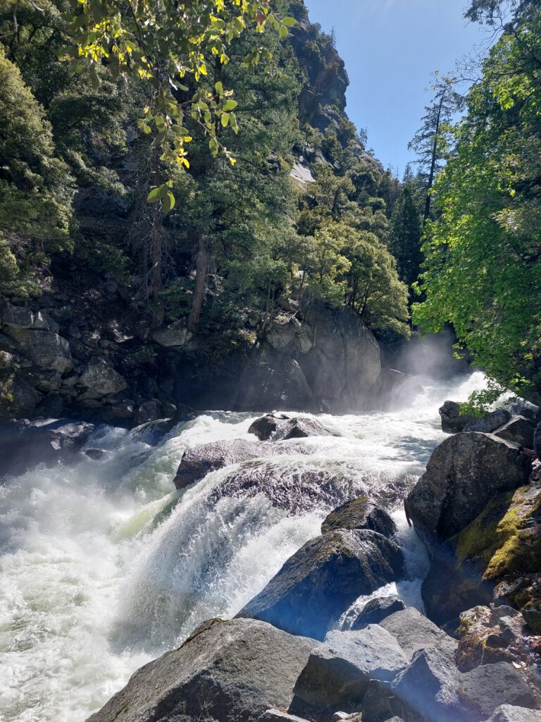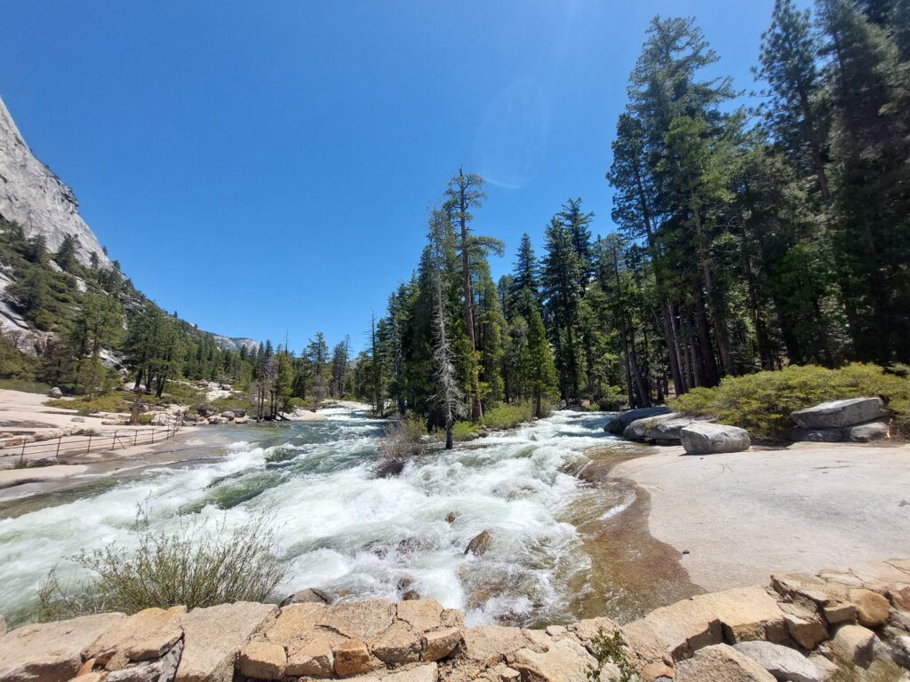 Hier kommt der Merced River an und fließt im Vernal Fall in die Tiefe