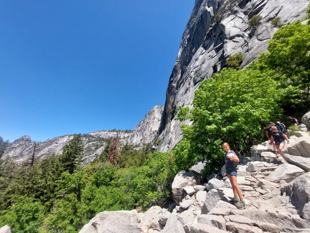 Am nächsten Tag haben wir uns auf einen der beliebtesten Wanderwege des Parks begeben: Am Ende des Tals stürzt der Merced River in zwei großen Wasserfällen von der Flanke des Half Domes entlang ins Tal. Über den Mist Trail erreicht man erst Vernal Falls, dann die Nevada Falls.