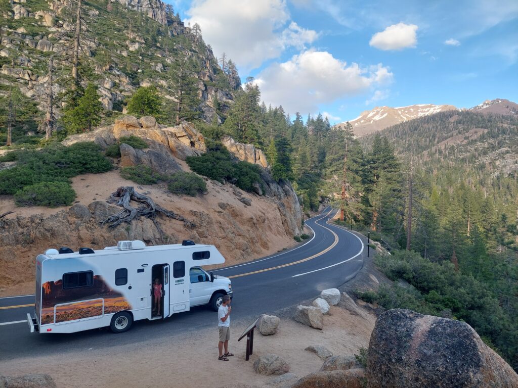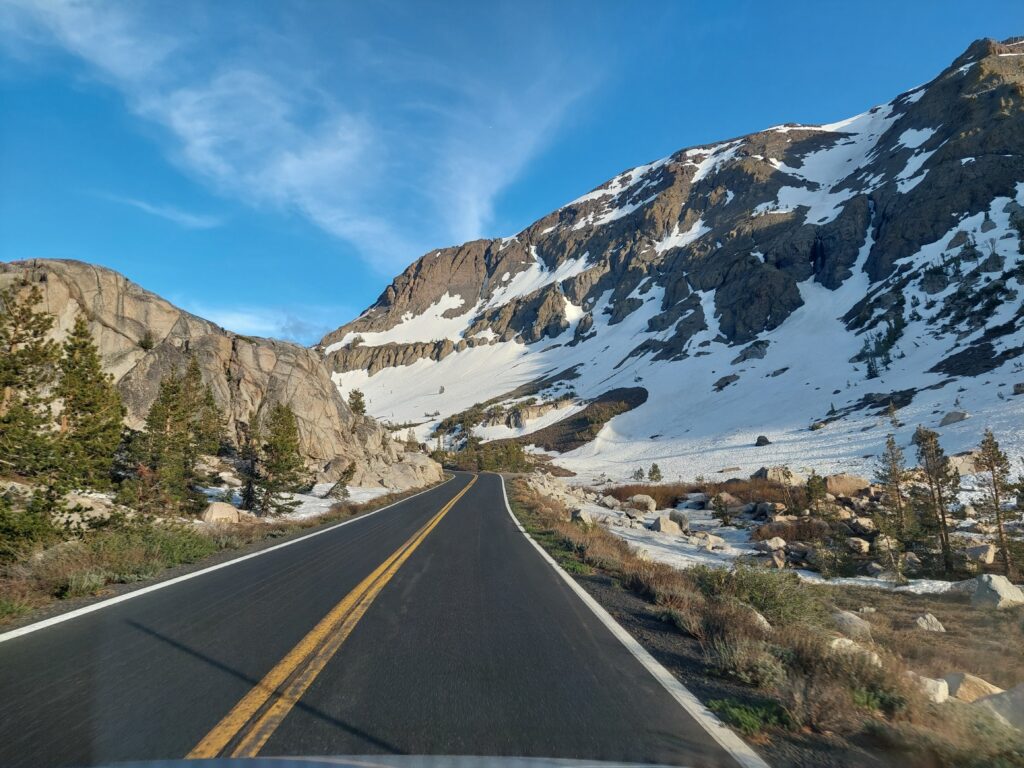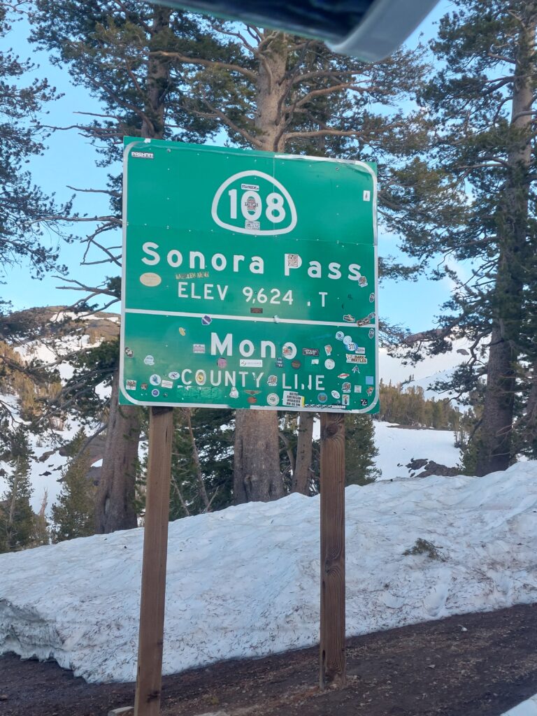 Über die Sierra Nevada wollten und sind wir trotzdem gefahren. Der Sonora Pass, etwas nördlicher und etwas tiefer gelegen war zwei Wochen zuvor freigegeben worden und wir brauchten nicht einmal Schneeketten. Schnee gesehen haben wir aber noch reichlich.