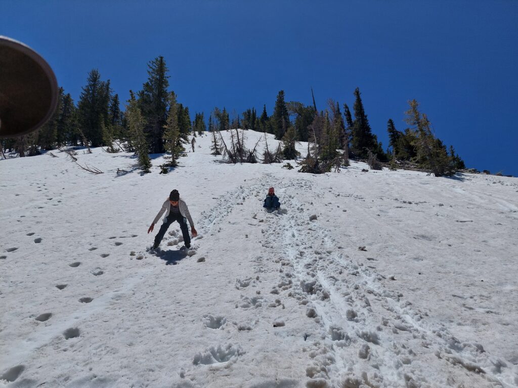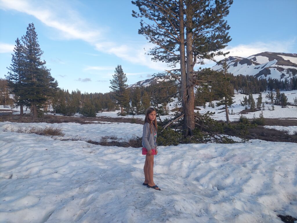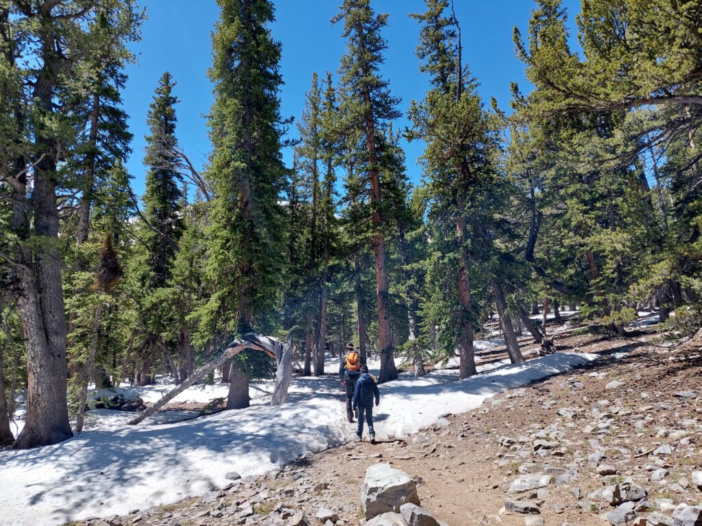 Da wir alle im letzten Jahr ziemlich wenig Schnee gesehen haben, hatten auch die Mädchen Lust am folgenden Tag noch eine kleine Tour vom oberen Wanderparkplatz aus in Richtung der Bristlecone Pines zu laufen.
