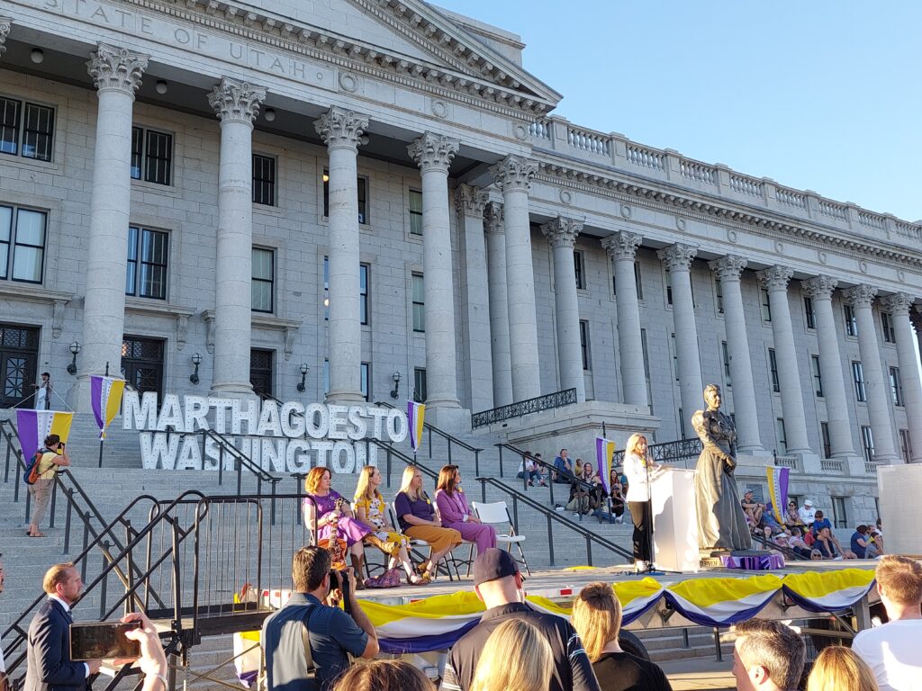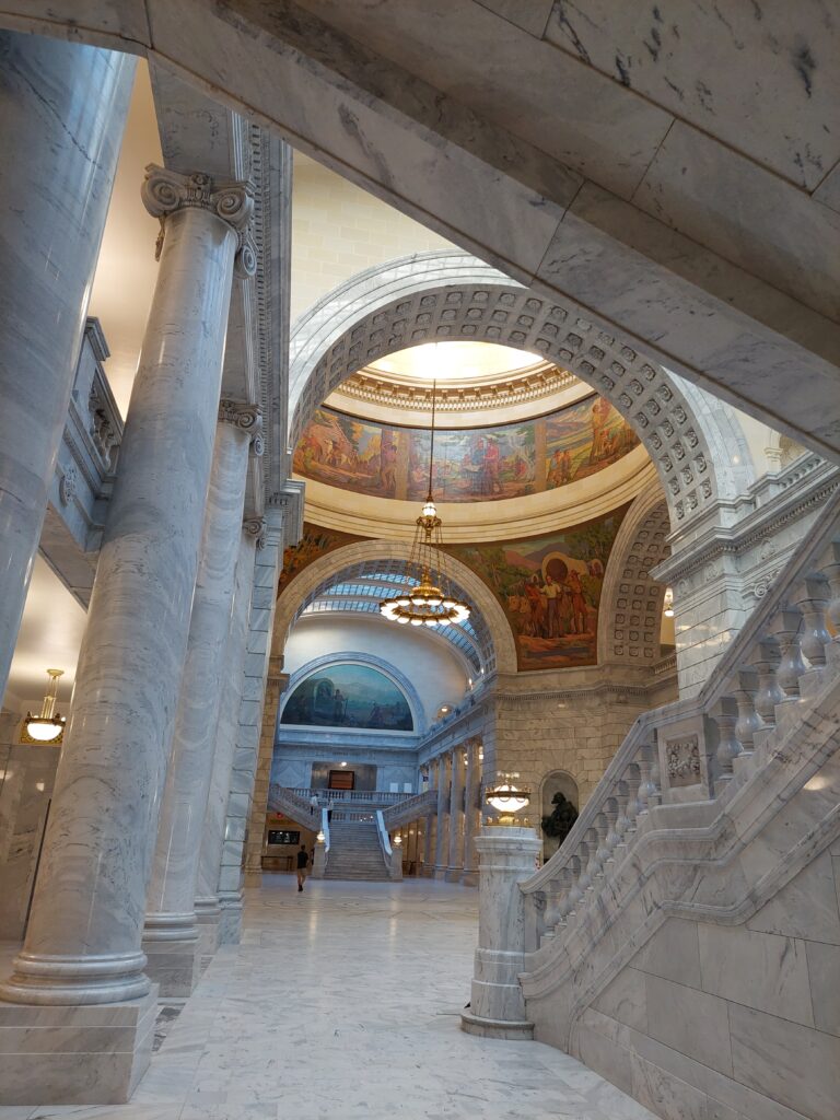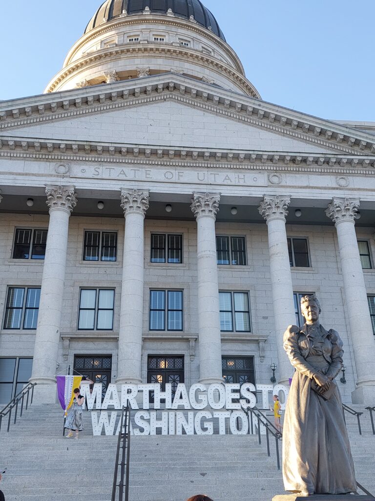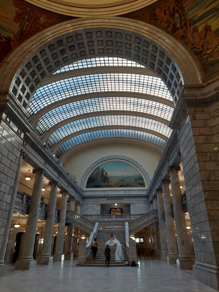 Salt Lake City hat, wie jede Hauptstadt eines US Bundesstaats, ein Capitol dessen äußere Erscheinung an das Capitol in Washington D.C. angelehnt ist. Wir wollten eigentlich nur mal gucken und sind dann in eine kleine Verabschiedungsparty für eine Statue geraten. Dr. Martha Hughes Cannon aus Utah, haben wir gelernt, war Ärztin, Frauenrechtlerin und 1896 die erste weibliche Senatorin in einem US Bundesstaat. Ihre Statue, die bisher vor dem Capitol in Salt Lake City stand wurde an diesem Tag in einem feierlichen Akt nach Washington verlegt um in einem Raum, in dem bisher nur männliche verdiente Amerikaner ausgestellt sind, die weibliche Seite der Politik zu repräsentieren. Bezeichnend, dass im Jahr 2024 Utah in Sachen Gleichstellung, Frauenrechte und Frauengesundheit Platz 50 der 52 US- Bundesstatten einnimmt.