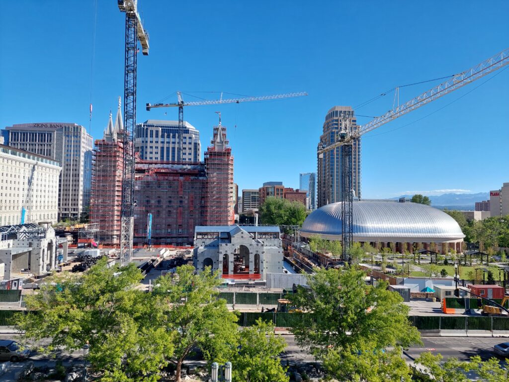 ‚Mormonen‘, ist sicher das, was den meisten Leuten zu Salt Lake City als erstes einfällt. Hier hat die ‚Church of Jesus Christ and Latter day saints‘ ihren Hauptsitz. Hier steht der größte Tempel, sitzt die Verwaltung, sowie der Prophet und die Apostel, wie sich die Kirchenoberhäupter nennen. Weltweit gibt es ca. 17 Millionen Mitglieder der Kirche, die alle gleichzeitig an den gleichen Stellen der Bibel in der King James Version und dem ergänzenden Buch der Mormonen arbeiten. So hat uns das eine der freundlichen jungen Damen erklärt, die im Tempelbezirk für 18 Monate freiwillig als Missionarin arbeitet. Nach der Schule können sich junge Mormonen weltweit als Missionare beim Propheten bewerben. Er (oder ein nicht erwähnter Mitarbeiterstab) betet dann über die Bewerbung und teilt den Bewerber dann einem der verschiedenen Missionsprojekte zu. Der heilige Tempel wird gerade erdbebensicher gemacht und um drei unterirdische Etagen erweitert. Zu besichtigen wäre er für Nichtmormonen aber auch sonst nicht.