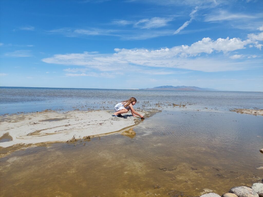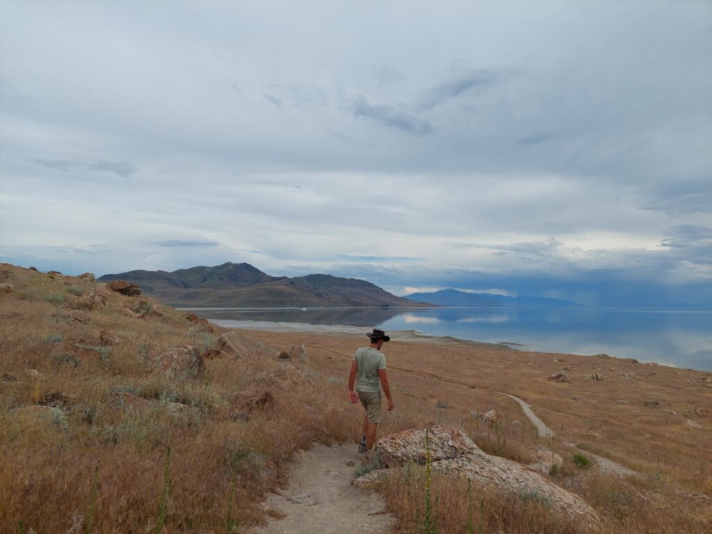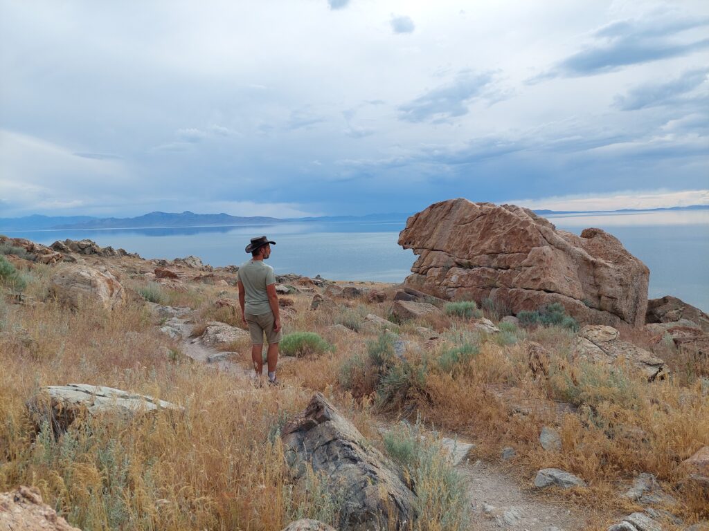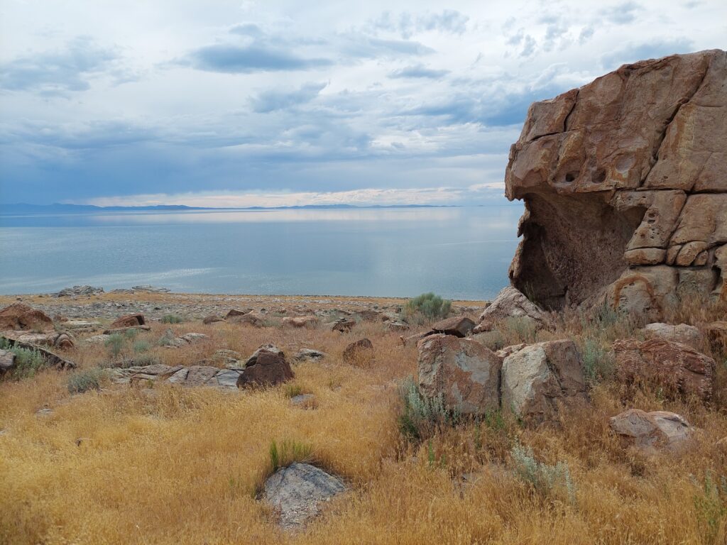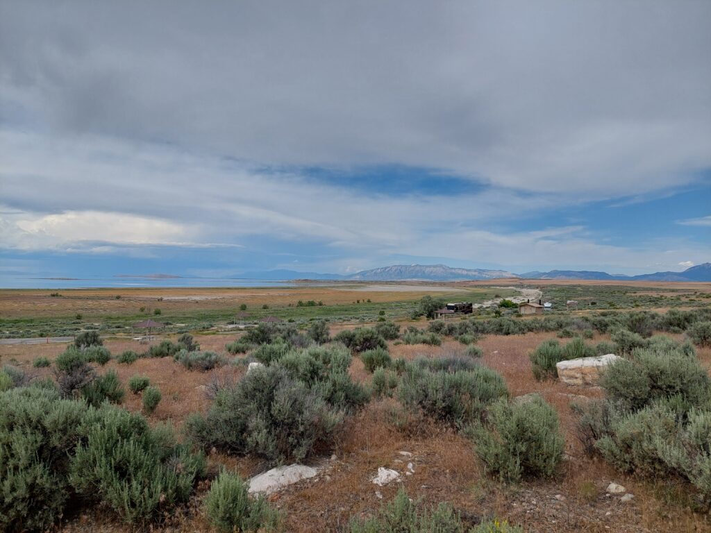 Die Landschaft ist, wie oft in Utah, trocken und felsig und hat doch ihre ganz eigene Schönheit. Das einzig Widerliche hier sind winzig kleine stechende Fliegen, die durch alle Mückengitter durchpassen und bevorzugt Hände, Füße, Kopf und Haare attackieren. Die Ranger gehen zwischen April und Juni nur mit langer Kleidung und einem dichten Netz, das vom Hut abwärts den ganzen Oberkörper bedeckt ins Freie. So was hatten wir nicht und sind wüst zerstochen worden. An unserem eigentlich schönen Campingplatz waren wir leider die meiste Zeit im Auto bei geschlossenen Fenstern. Zum Glück waren sie in den höher gelegenen Regionen etwas weniger aktiv, so dass wir uns dort ganz gut aufhalten konnten. Merke, Antelope Island ist unbedingt eine Reise wert, aber nicht von April bis Juni!