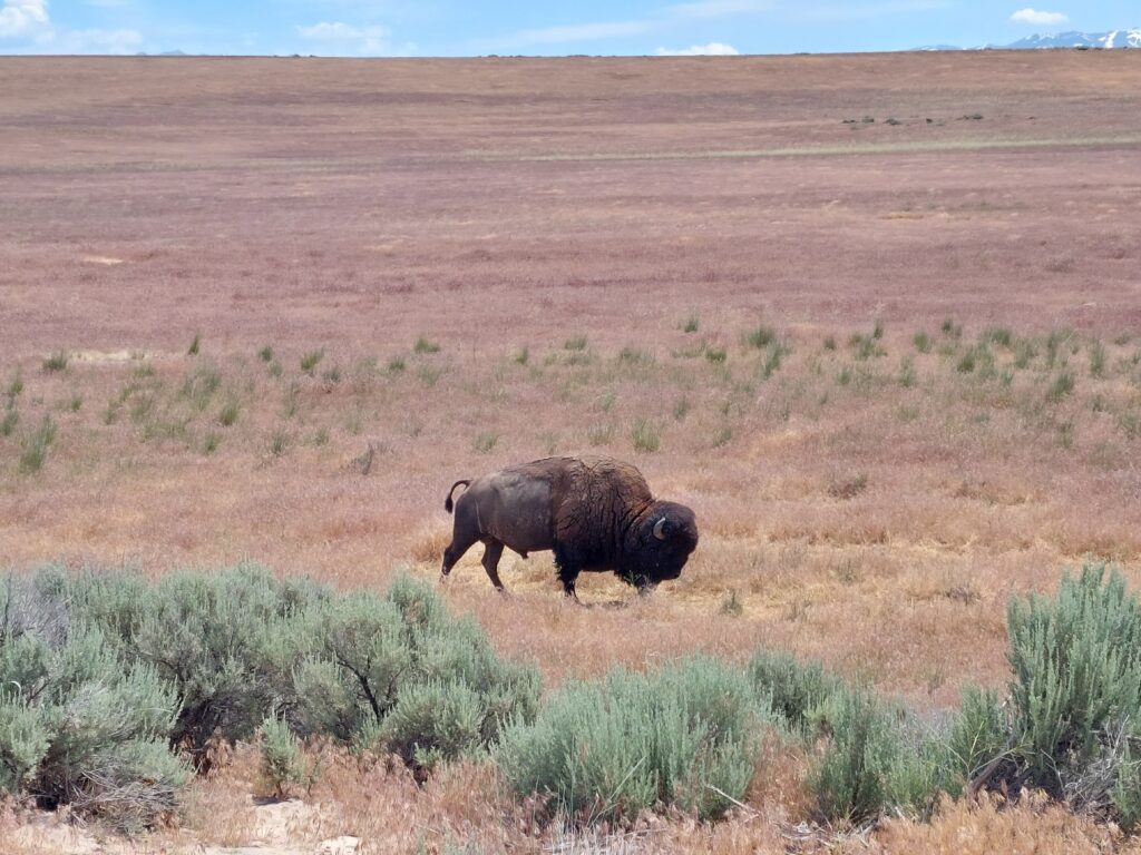 Gar nicht weit von Salt Lake City entfernt ragt am südöstlichen Ufer des Great Salt Lake die Halbinsel Antelope Island in den großen See hinein. Benannt ist sie nach den auch hier lebenden Pronghorn Antilopen. Hierbei handelt es sich nicht um eine Antilopenart, sondern um den letzten noch lebenden Vertreter einer eiszeitlichen Gattung von Hornträgern, die als einzige Hornträger ihr Gehörn jährlich erneuern. Bekannrer ust de Insel allerdings für ihre wild lebenden Bisons. Bereits Anfang des 19. Jahrhunderts hatte ein findiger Naturschützer verstanden, dass die europäischen Siedler dabei waren die Bisons auszurotten. Aus diesem Grund hat er eine kleine Herde auf die Insel bringen lassen und hier unter Schutz gestellt. Sie fühlen sich auf der felsigen, struppigen Insel im See so wohl, dass mittlerweile viele Hundert von ihnen hier leben. Nur über einen langen schmalen Damm kann man die Insel mit dem Auto erreichen. Heute ist die ganze Insel ein State Park des Staates Utah.